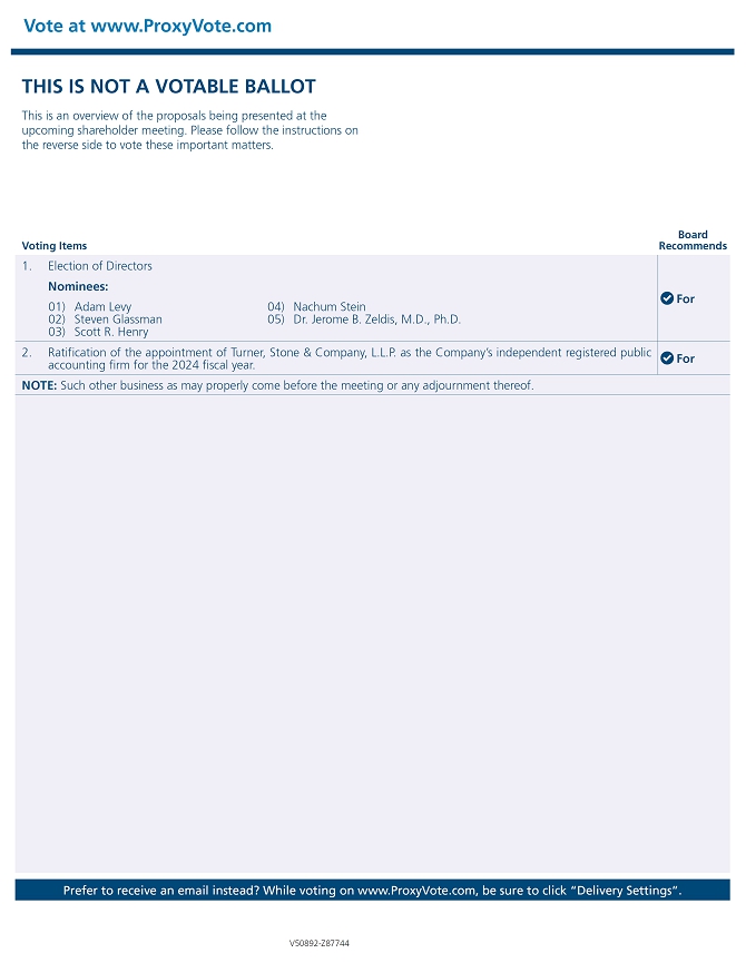 | (2) | Ratification of the appointment of Turner, Stone & Company, L.L.P., as our independent registered public accounting firm for the 2024 fiscal year. | |